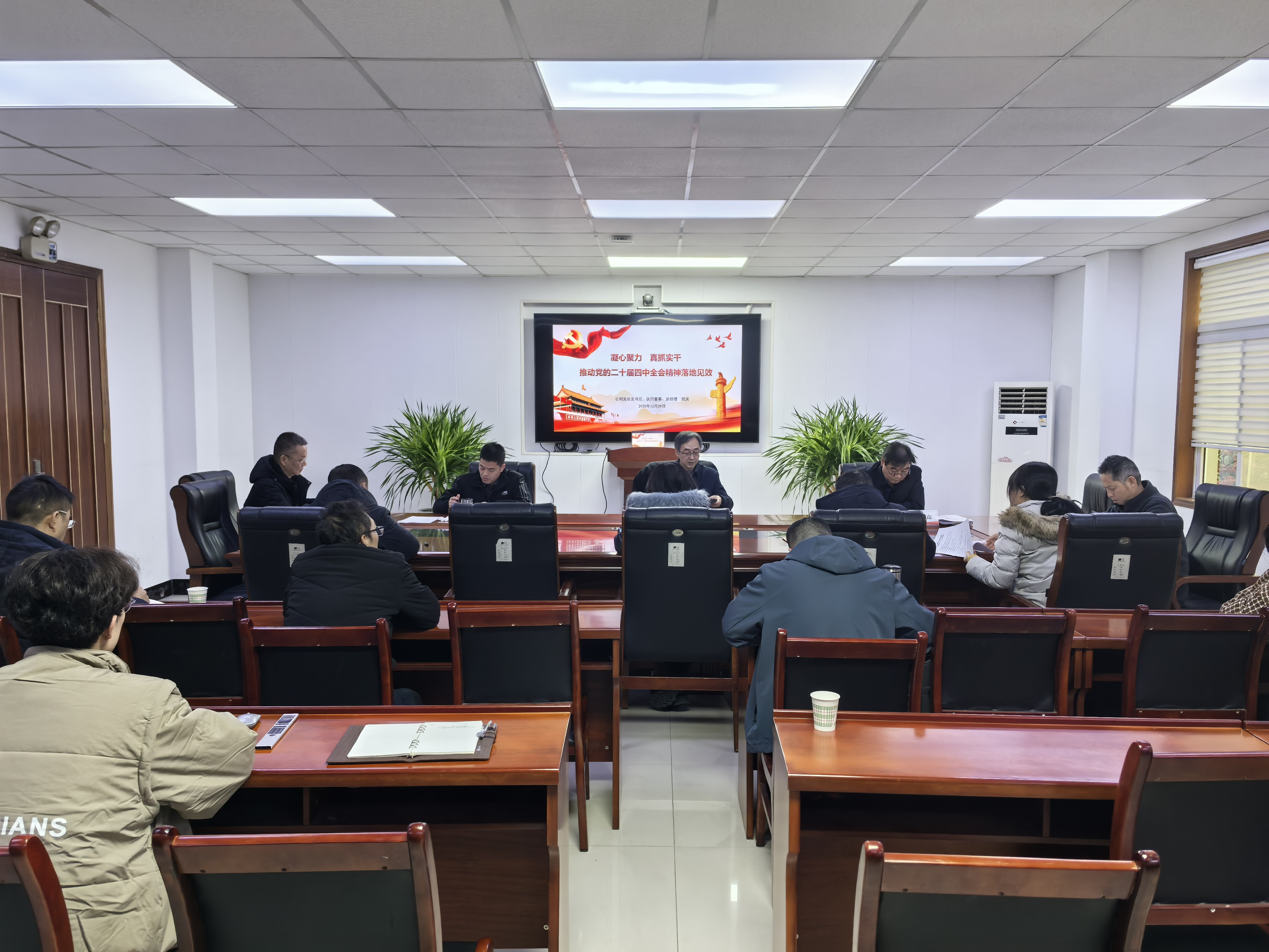 为深入学习贯彻党的二十届四中全会精神,切实把广大干部职工的思想和行动统一到党中央决策部署上来,12月29日,公司召开党的二十届四中全会精神宣讲会暨党总支理论学习中心组第12次集体学习(扩大)会议,党总支书记倪滨以“凝心聚力 真抓实干 推动党的二十届四中全会精神落地见效”为题进行了宣讲,教育引导党员干部职工把思想和行动统一到党中央的决策部署上来,推动全会精神在基层一线落地生根,见行见效。